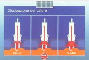 Una candela calda mantiene la temperatura della punta molto alta e conduce una poco calore alla testa.