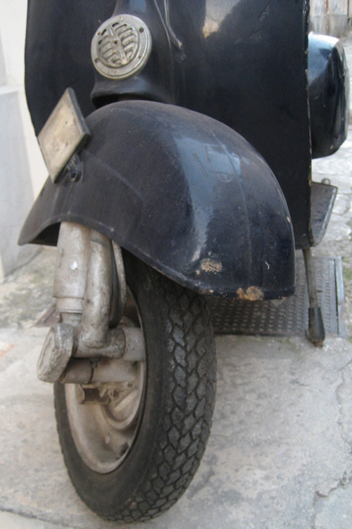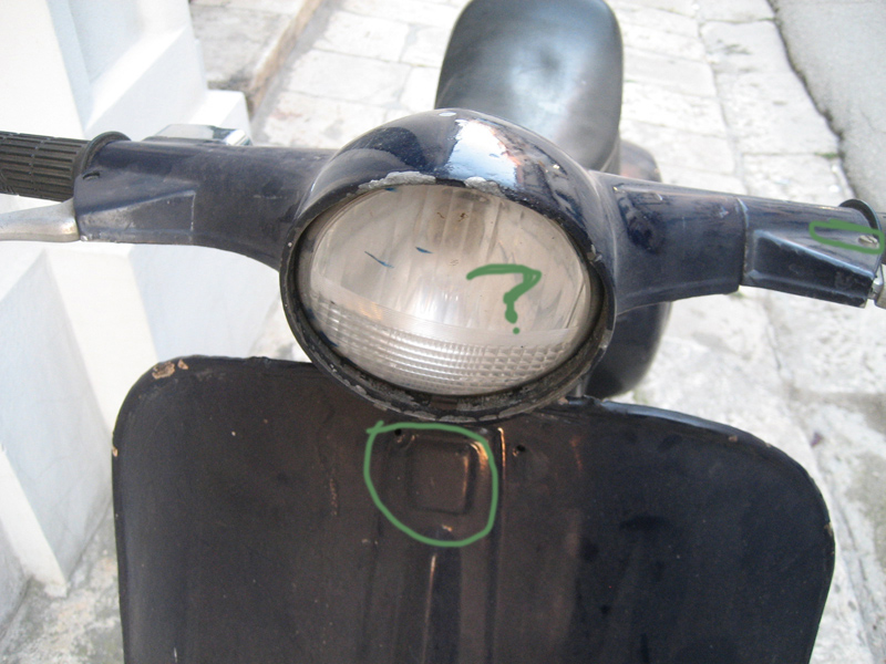 Invece parliamo della V5A1T, telaio 1201xx l'ho comprata un mese fa, pagata una sciocchezza, regalata a mia moglie che da tempo ne voleva una. La Vespa in moto. Manca qualche pezzo. Riverniciata almeno sei o sette volte, due delle quali a pennello