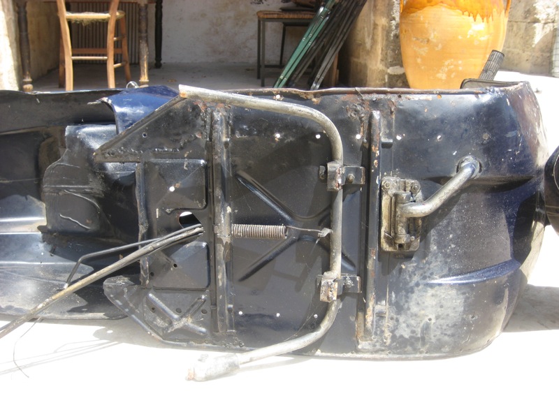 Motore e viterie e pezzi da non verniciare portati qui con me in francia. Carrozzeria lasciata in italia per sabbiatura e verniciatura in bilux (se trovo chi me la fa) grigio ametista, come da colore originale trovato smontando pedale freno.