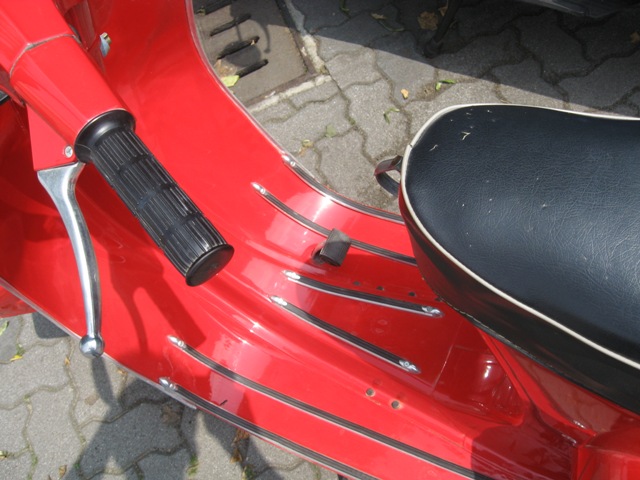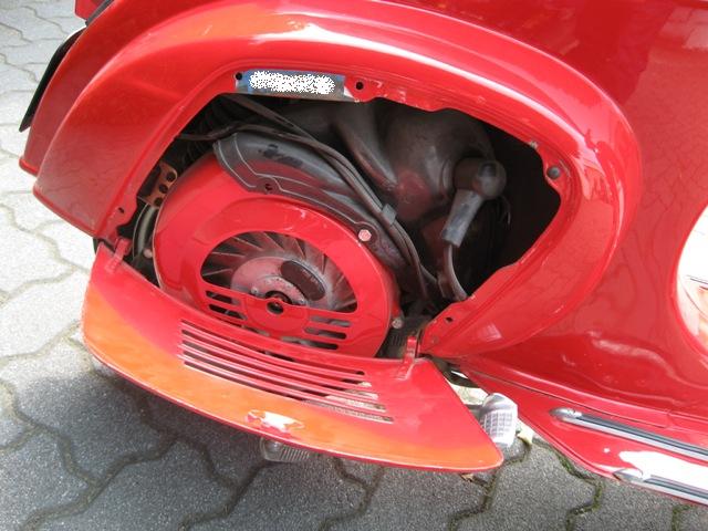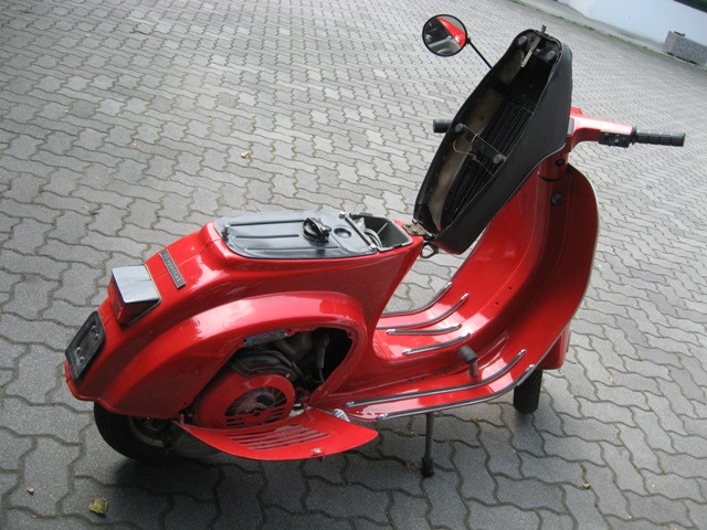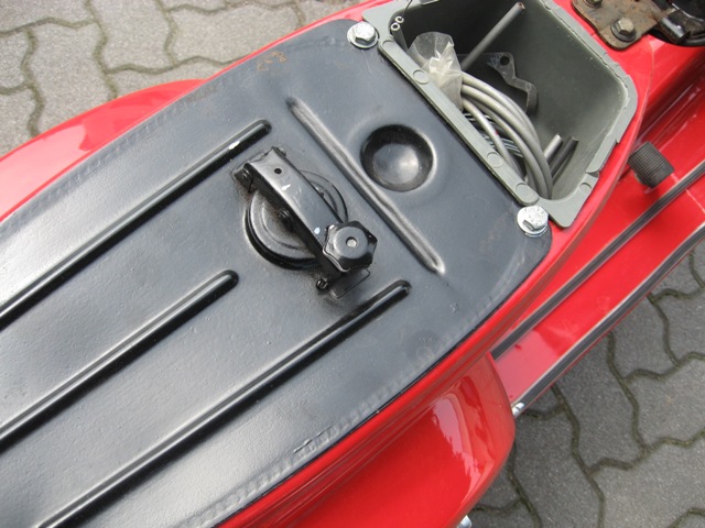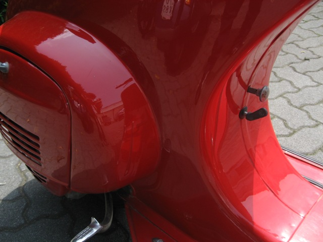 il colore è successivo sicuro... però non capisco se sia un rosso originale... sembra molto il rosso corsa... il tettuccio sul fanale post vagrigio, il coprivolano color alluminio... il serbatoio in tinta... manca il nottolino del bloccasterzo... poi non so... per altri particolari aspetta altri commenti...comunque complimenti.... molto bella!  |