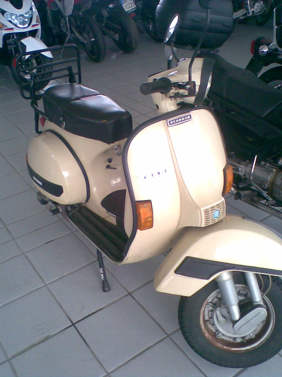 molto bella e ben tenuta! poca ruggine che si elimina con proprio poco sostituire il nordo scudo con altro in alluminio, via il bordo al fanale che non c'entra rimetti a posto la sella pulisci il carvuratore lava il motore esternamente coll'idropulitrice e vai un gran bel prezzo, il mio PX125E, con documenti, da ristrutturare l'ho pagato 600 € più passaggio ho già speso più di 400 e di ricambi e devo ancora sabbiare verniciare e montare! ciao! |