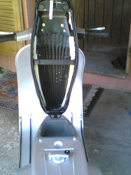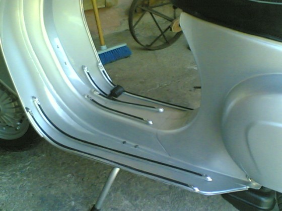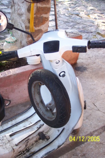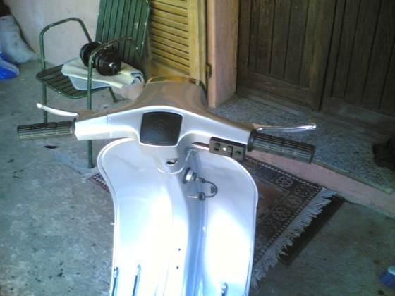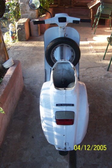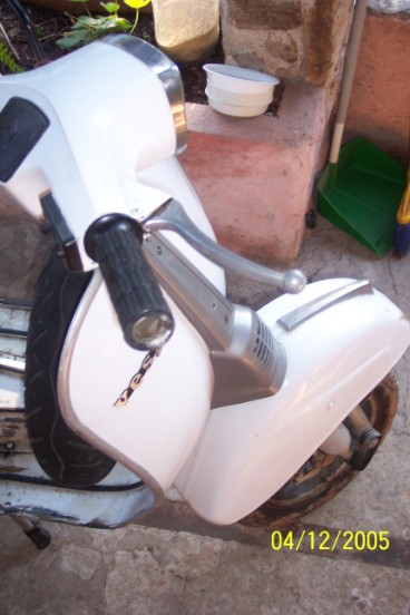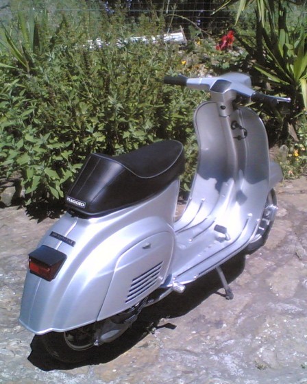 per la verniciatura ho speso 200 euro, il carrozziere ovviamente e' un amico e gliel'ho portata completamente smontata e gia' sabbiata, la spesa maggiore e' stata l'acquisto di tutte le parti originali piaggio sia carozzeria che motore.per il resto ho provveduto io stesso al montaggio completo e sostituzione di tutto, ma proprio tutto dalla a alla z, compresa la revisione del motore e sostituzione di tutta l'impiantistica elettrica. in totale la spesa pe ril restauro totale si e' aggirata intorno ai 900 euro.... neanche troppo visti i risultati che sono andati oltre ogni mia previsione !!! direi che alla fine tutto sommato e a parte la modestia  e' venuto fuori veramente un ottimo lavoro.....   |