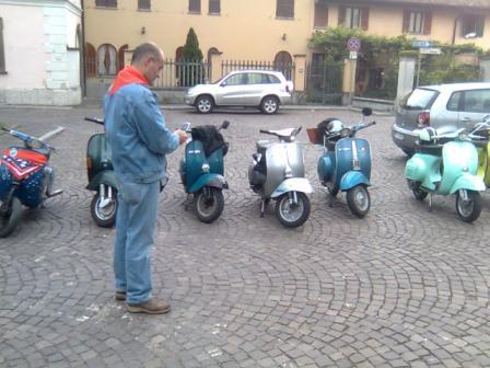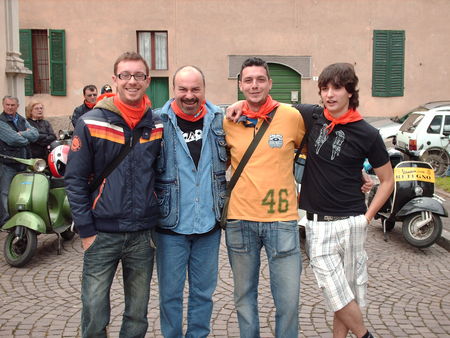 eccoci e sopratutto foto del 1° vespa giro del cremasco!!!! siamo partendo da sinistra: saberich,max t5,io bomba 82(primavera) e vespaislife(50R)!!!