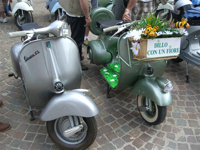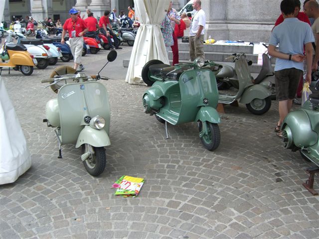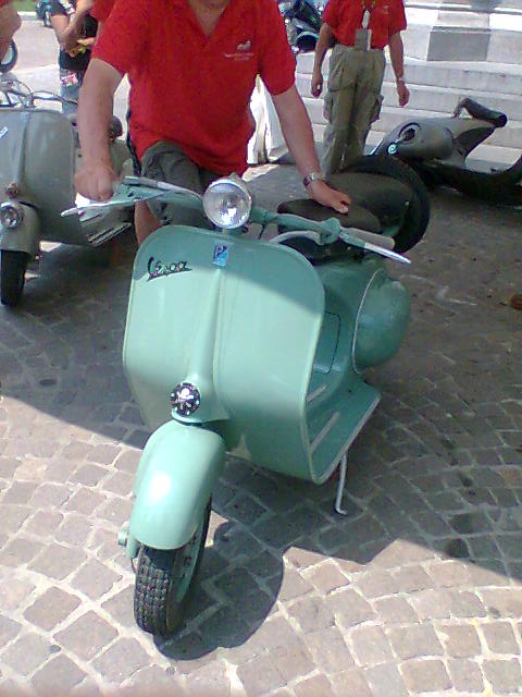eh si gran bel raduno, un sacco di nonne tirate a lucido. Devo dire che il raduno è stato preso un po' sotto gamba, forse per i costi o forse per il malinteso dato dal nome della manifestazione stessa "registro storico" che ha tratto in inganno molti che pensavano che fosse necessaria la targhetta fmi per partecipare. Ma bello comunque, soprattutto per il fatto che potevano partecipare modelli prodotti fino al 1982 ma il 70% dei modelli era antecedente al 70!! Esposto il telaio numero 21 della prima serie, così come la seigiorni, la vespa 400, insomma, da rifarsi gli occhi! E poi ho finalmente offerto una birra a Lorenzo Wyatt87 che si meritava decisamente per avermi scovato il px a Genova poco tempo fa! |