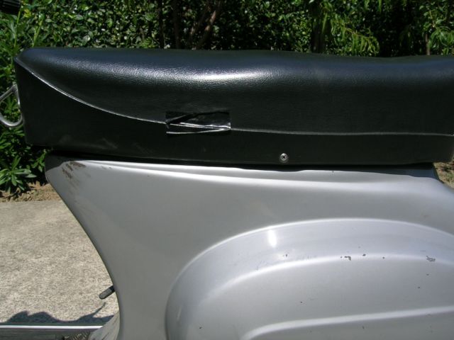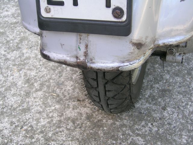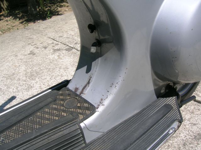 Come avevo già detto è tutta originale, anche la polvere! a parte gli scherzi ho dovuto cambiare le gomme, e i piedini del cavalletto e il coprifaro che erano rotti, per il resto l'ho "curata", seguendo anche i consigli del forum, senza però strafare, pulito per bene tutto quello che sono riuscito a pulire, riverniciato i cerchioni e la marmitta, lavato e lucidato la carrozzeria. Il motore va ancora che è una meraviglia anche se non ho mai superato i 55 km orari. La carrozzeria riporta i segni del tempo come potete vedere: Immagine: