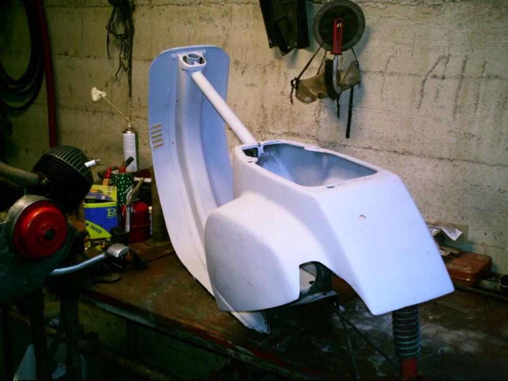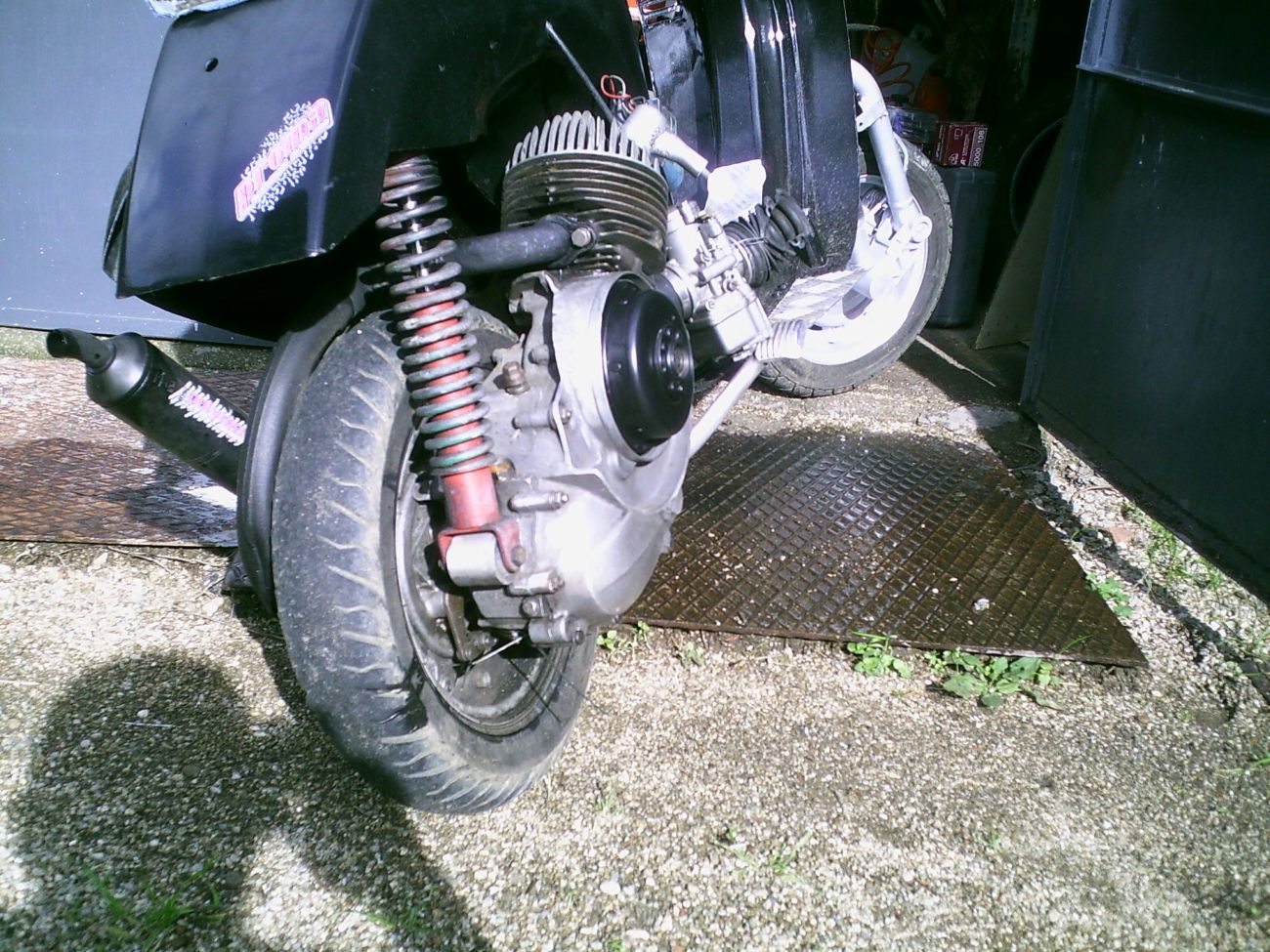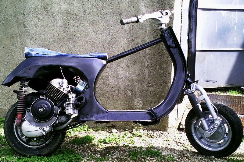 Ragazzi questa era una vespa Pk che ho trasformato in una vespa da cross   Monta cilindro polini 130 cc. modificato e rettificato a 57,5 scarico e travasi modificati,pistone monofascia Asso vertex 57,5 . Testa abbassata e altri lavoretti Albero corsa lunga Mazzucchelli anticipato Carburatore Dell'orto 32mm Collettore artigianale Campana 27-69 Travasi carter raccordati al cilindro Volano della vespa hp allegerito( con asportazione ghiera dentata e alette in plastica ) Marmitta Polini banana ( sara' poi sostituita perche' non e' proprio adatta a tale elaborazione. Telaio completamente rivoluzionato e allegerito