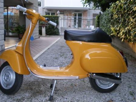 Le tue scelte stilistiche ( non č al 100 percento originale vero? ) mi piacciono molto ..cerchi chiusi in modifica da 10 , marmitta a siluro cromata, colore giallo positano ( di 50 r )..un solo appunto ,,,ti prego cambia il coprivolano pk! č un offesa a quella stupenda vespetta!  |