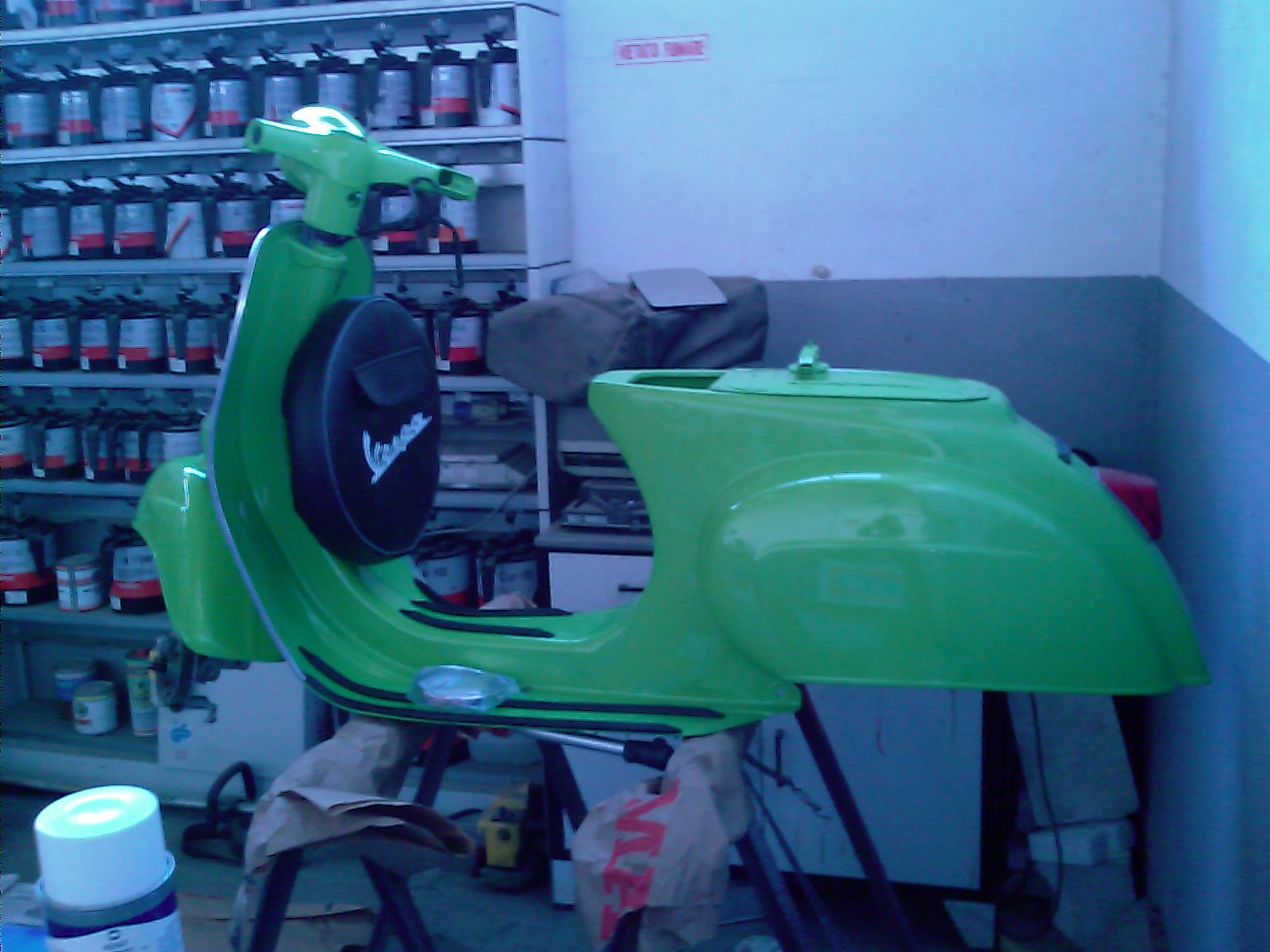 | ehehehe ciao amico sardo, itta paridi? bella la vespa, ma mi sorge un dubbio: il verde mela è un colore originale della R? io ricordo che era un colore previsto solo per la L... comunque sia bella... compliments |