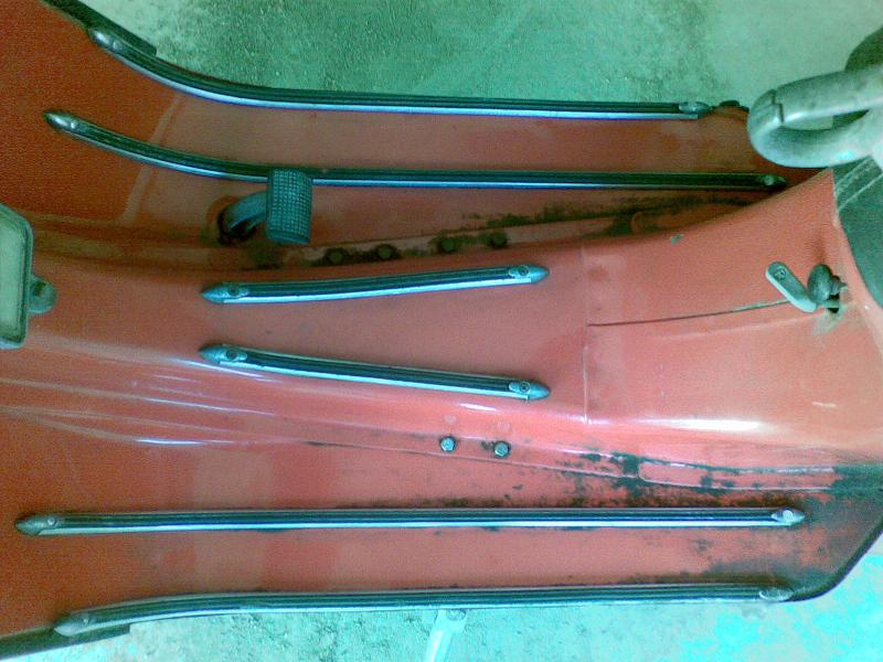 Il suo colore originario era con molta probabilità il 2/1 ROSSO ARANCIO, tolto il nasello se vedi i buchi, và rifatta in toto...