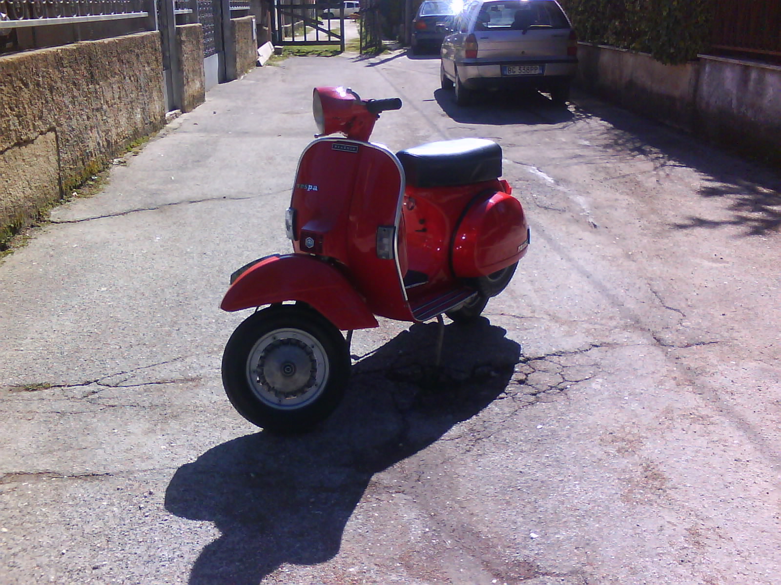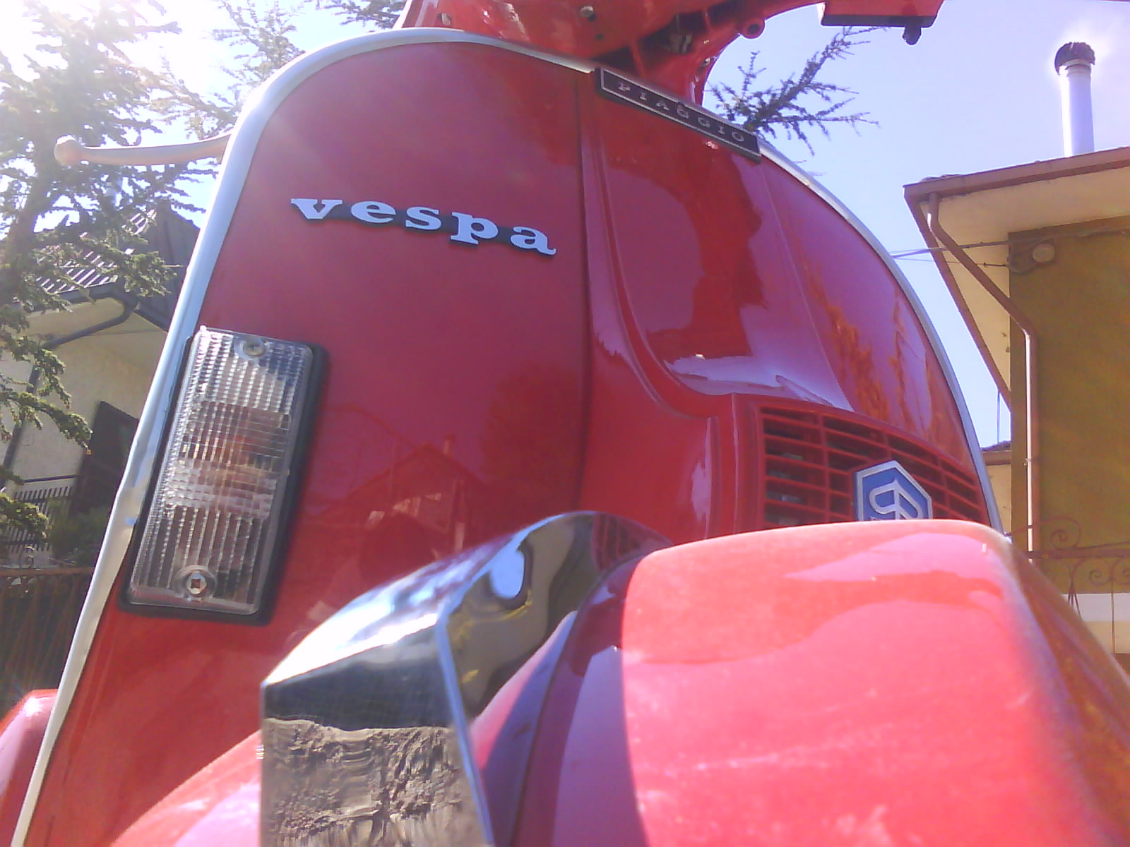 Ma fatemi il piacere se ti fanno il verbale per le frecce trasparenti..maah. Va messo la borchia sul mozzo anteriore, il coprimolleggio e la maniglia della sella. Secondo me la cresta cromata e le frecce trasparenti la rendono un pò più moderna, senza alterare l'originalità; In fono cambia solo il colore dei pezzi! Il logo piaggio direi che va bene. |
