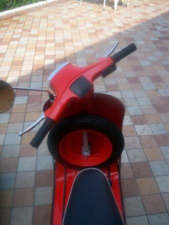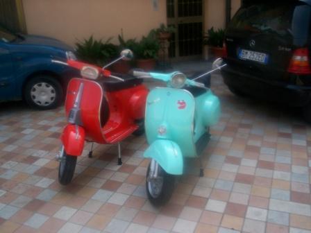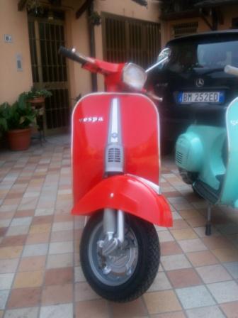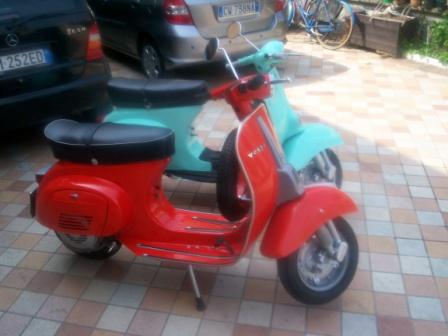 | Brao! Bella, è uscita bene, anche il colore, molto bello! Se vedo una Vespa rosso corsa (storta... scherzo dai!) per Crema so che sei tu! |