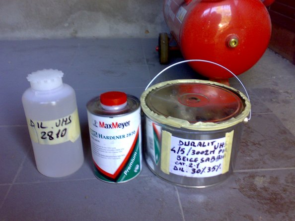 tinta Duralit UHS con relativo catalizzatore e diluente.. 2:1 diluita dal 25 al 35 % ..mi scrive tutto quel signore..120€ 1,5kg di colore Immagine: