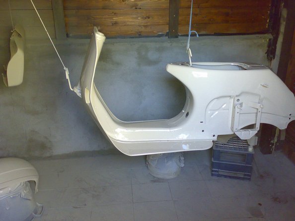 sono prvato ad entrare , la vespa è fuori polvere , ma non la tocco per un bel po..tanto mi devo procurare il bordoscudo e l'impianto elettrico , i cavetti e altre cosucce...Mi dedico a quello
