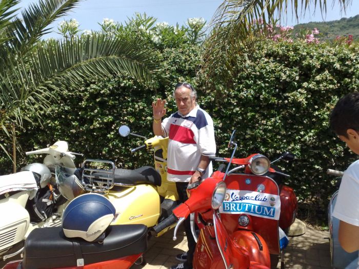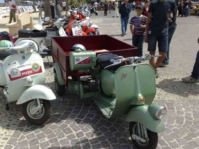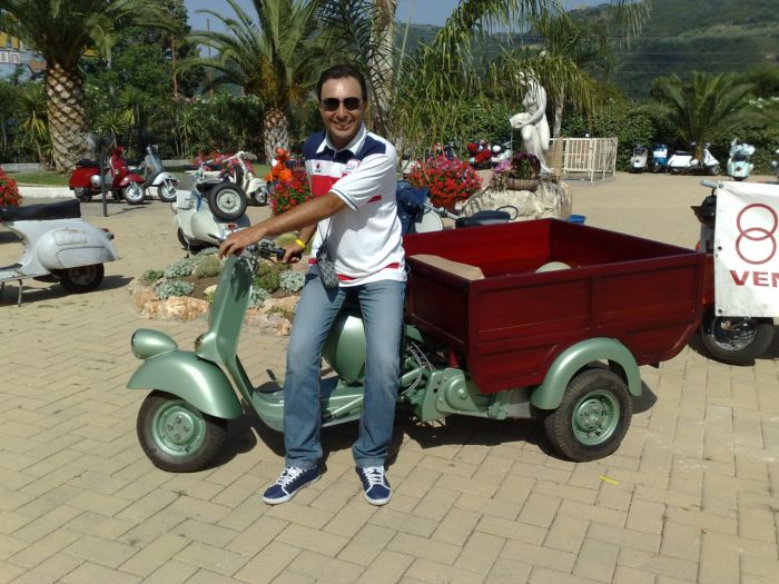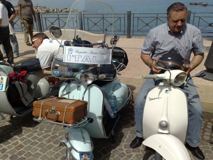 Quella VESPA che dici tu, e' di un vecchietto che con la sua signora fa un numero indefinito di raduni ogni stagione,e' un siciliano,non ricordo se viene da MILAZZO o BARCELLONA, molto simpatico, massimo rispetto per Lui e per la sua VESPA. Vorrei arrivare alla sua eta' attivo e dinamico come lui.