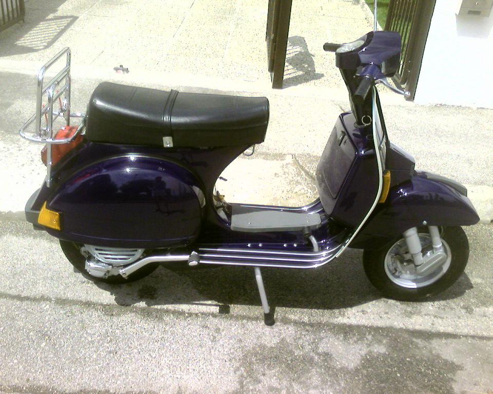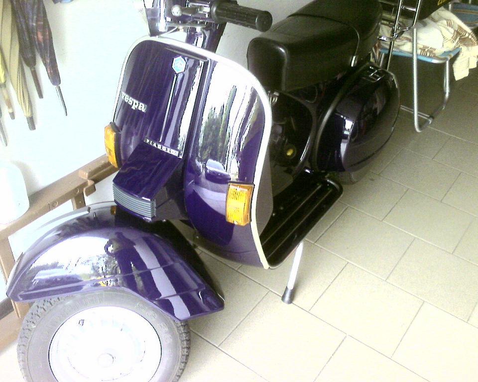 grazie dei vostri complimenti  si effettivamente il colore non credo sia originale ma poco importa...piuttosto che bianca o rossa originale meglio viola scuro tarocco  una qualsiasi vespa di qualsiasi colore non passa mai inosservata quando è restaurata! |