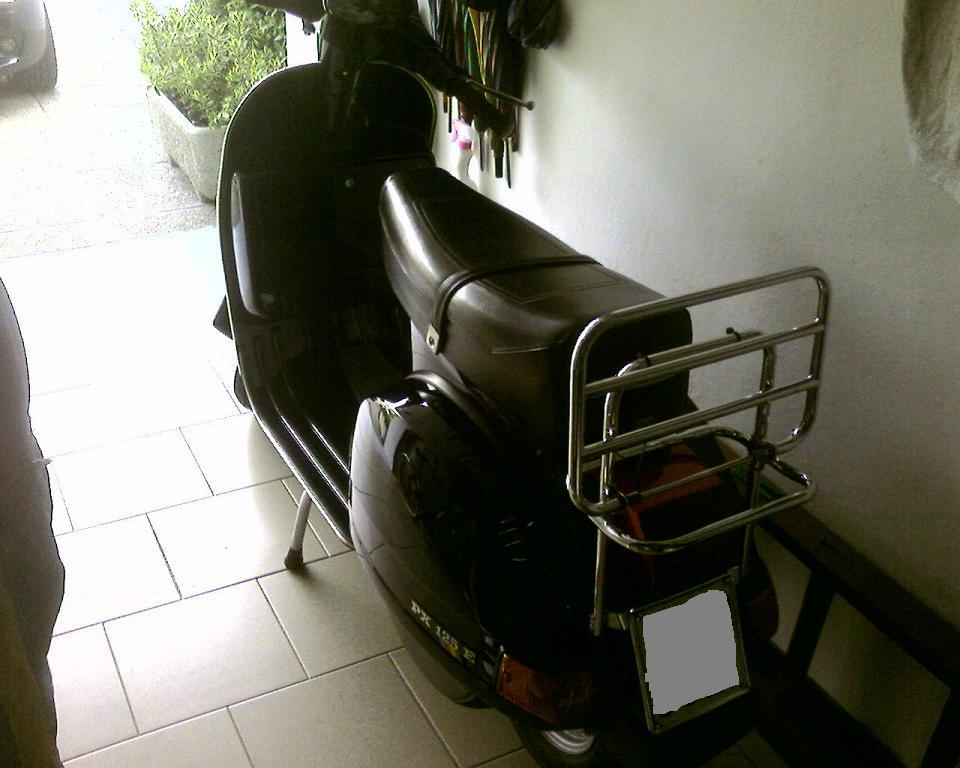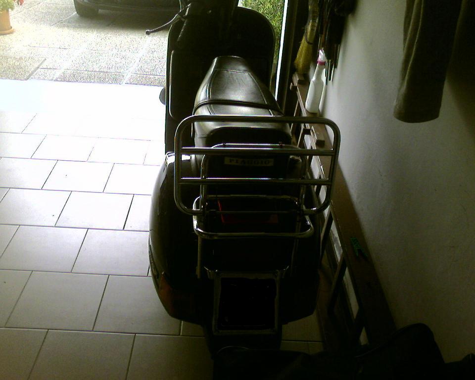 inizialmente volevo togliere il portapacchi posteriore ma poi mi sono convinto a lasciarlo...nelle brevi soste ci aggancio il casco!!
