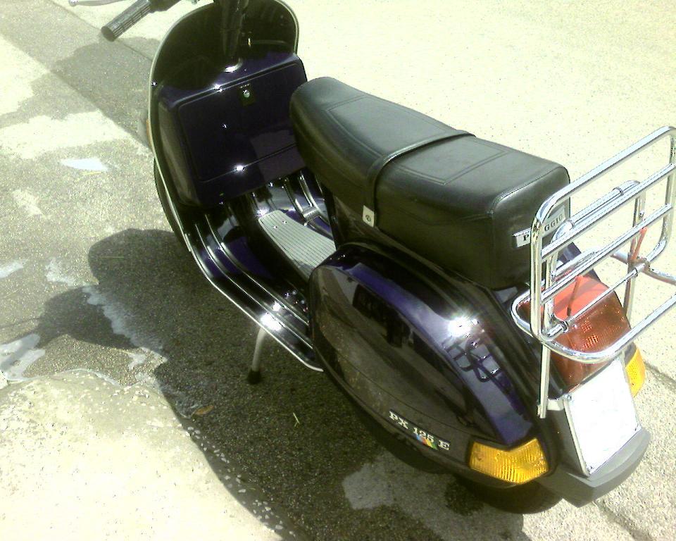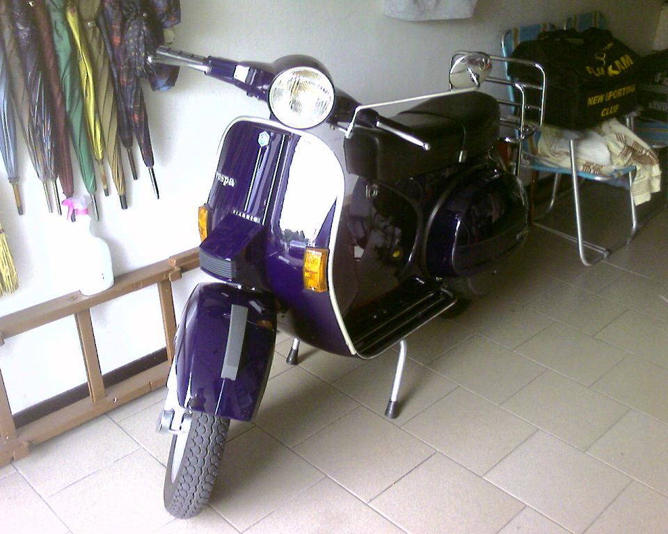 Salve,ritengo a mio modestissimo parere che le foto ampiamente chiare e dettagliate non tradiscono affatto,anzi,direi un lavoro senz'altro benfatto e curato nei minimi dettagli,il mio PX200E che originariamente è un "Bianco P9/4",oramai dopo quasi 20anni di"onorato servizio",la Vespa necessita di un vero e proprio restyling generale,ed infatti avrei pensato,sempre attenendomi alla gamma colori prevista per la produzione 87/89(ultime Arcobaleno prima della "COSA"),c'era proprio il "BLU SPAZIO P8/12",una tonalità piu' corposa è intensa a differenza degli altri due precedenti Blu Piaggio. Questa foto invece ritrae l'attuale status della mia PX200E dal 1989 a tutt'oggi.
