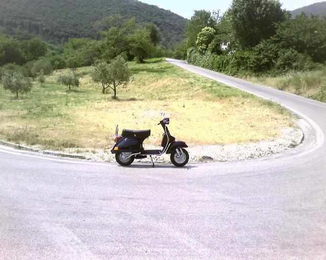 poi in mezzo ai colli ho trovato un ragazzo a bordo di una PK125s bianco, non ne avevo mai viste di 125 prima d'ora, comunque gli ho dato una lezione di guida  al ritorno invece incrocio un vespista in sella ad una large (non chiedetemi quale perchè faccio fatica a distinguerle ) e lì c'è stato lo scambio di saluti