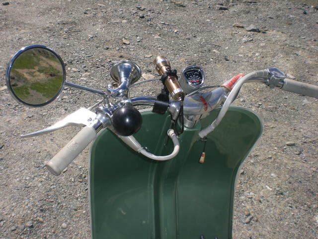 Mi avvio a piedi al ristoro (2 tornanti sotto) in cerca della chiave del 17 ma arriva un vespista col px. Mi i presta la chiave, serro ben bene i dadi e pian piano riprendo la via di casa.