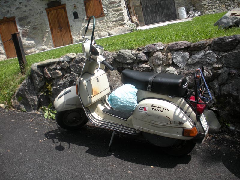 ecco la vespa del nostro albergatore che ci teneva a farla vedere sul nostro forum inattesa di un pronto restauro questo motore ha la bellezza di 87000 km e non è mai stato aperto ,apparteneva al suo papà e lui ha continuato la tradizione