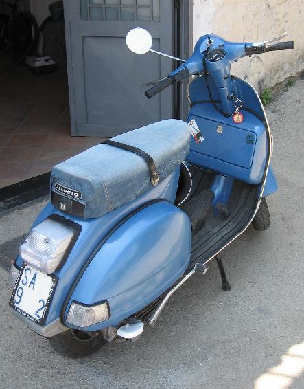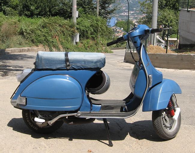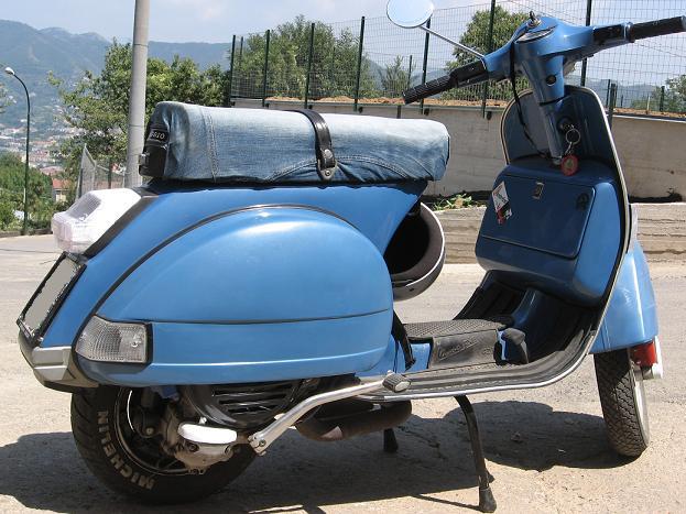 Bello...il fanale per me stona..volevo montarlo pure io perchè si intona alle frecce  sella jeans?? la mia è in similpelle e il mio px è blu....ci stiamo copiando a vicenda  molto bello !! |
