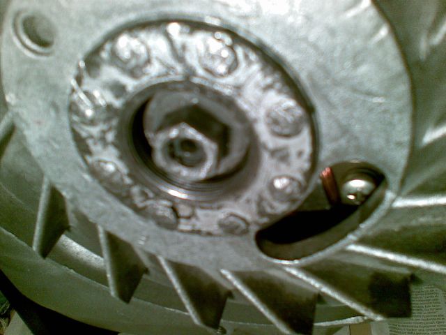 2)il più importante...la filettatura del volano è rovinata nella parte iniziale e quindi non mi si avvita l'estrattore!! nella foto non si vede bene comunque gli sarà stato dato un bel colpo di martello! L'idea sarebbe di andare li con il disco del dremel solo che ho paura di rovinare tutta la filettatura...oppure potrei andare in rettifica (cosa che preferirei evitare..visto gli sconti che mi riservano ). Insomma, consigliatemi voi!