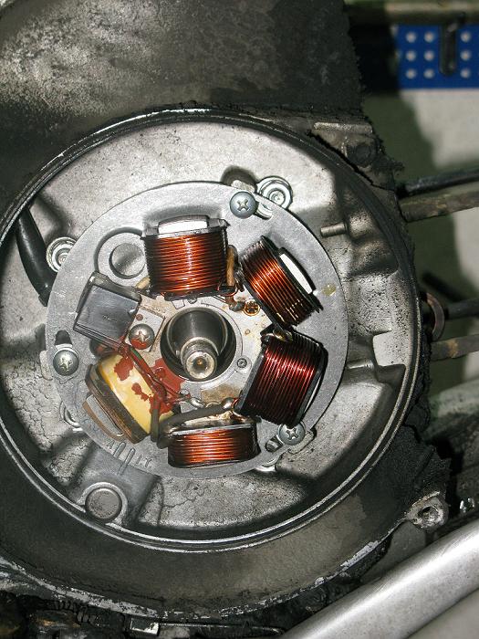99,03 KB Come vi sembra? Per toglierlo ho svitato le tre viti di fissaggio e sfilato dal carter i fili elettrici tipo americane. nella foto potete notare la fasatura. Una volta sfilato lo statore mi sono trovato davanti l'albero motore dal quale ho tolto con l'aiuto di un piccolo cacciavite la chiavetta del volano come potete vedere dalla foto: