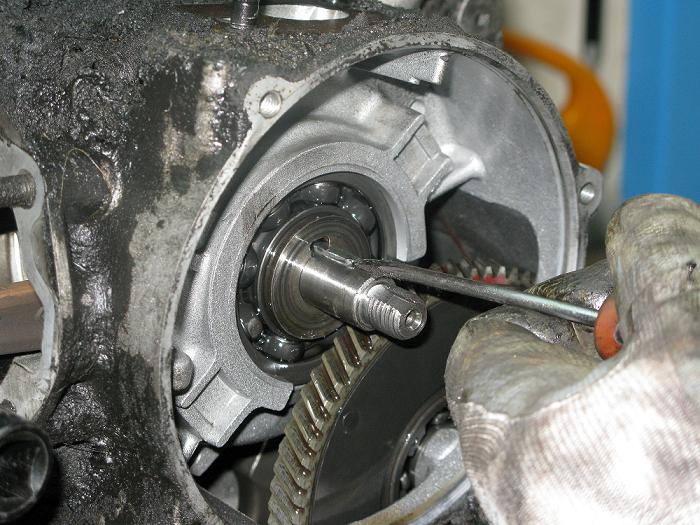 mi sembra fino adesso che hai smontato con procedura regolare,ti ricordo che se devi aprire in due i carter devi smontare il preselettore,che in foto era ancora montato.
