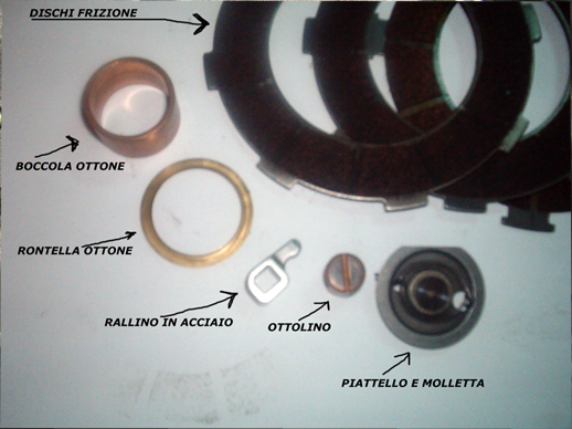 oltre alla boccola di rame ci deve essere pure una rontella di rame, se non si è disintegrata dovrebbe stare fra il disco incorporato al ingranaggio primario e il piatto dove nel retro appoggiano le molle,e devono essere sostituiti