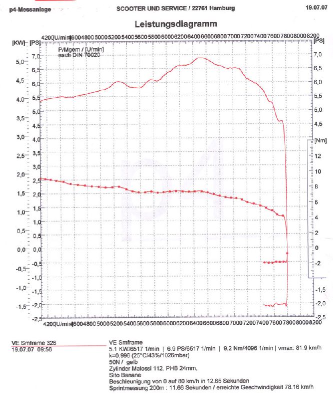 100,97 KB Questo grafico si riferisce ad un Malossi 112cc con PHBL 24 e siluro sito. La potenza massima è raggiunta a 6500 giri e la coppia massima a soli 4000 giri. Ciò significa che, dopo il cambio marcia, il motore scenderà di giri ma si troverà in un punto in cui ha più coppia rispetto a prima del cambio marcia. Ciò gli permetterà di tirare rapporti più lunghi senza cali tra una marcia e l'altra.