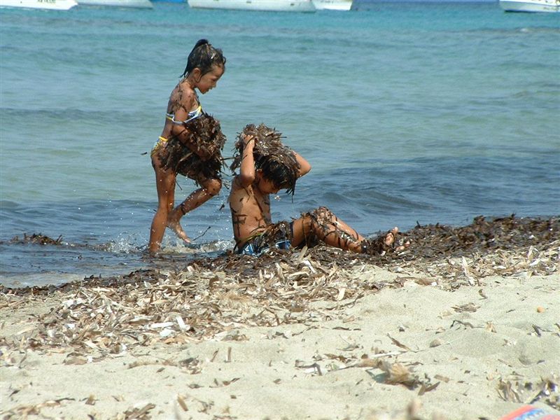 madò le alghe però fanno male sulla pelle del bambino.. mi ricordo quando giocavo qualceh anno fa così a mare