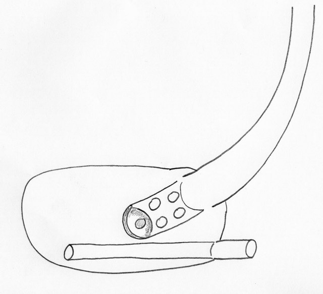 Il tubo innesta con un angolo minore (o maggiore a seconda dei punti di vista)per non ostacolare con il suo flusso quello proveniente dall'altro tubo, in pratica ho ragionato così; " all'aumentare dei giri del motore aumentano sia la quantità dei gas che la pressione, ora, un solo tubo anche se di poco più grande dell'originale potrebbe non riuscire ad espellere tutti i gas, murando intorno ai 6000/7000 giri (alti), difatti la pre-camera è in effetti guardandola sufficente e ben capiente sulla marma PK , il passaggio dei gas dalla prima pre-camera alla seconda è stato poi facilitato maggiorando i fori già generosi di comunicazione, il problema era quindi solo lo scarico dalla camera posteriore da cui pesca il cannello, troppo lungo e che era poi parecchio soffocato dalla cupola anti-rimbombo, credo avesse una funzione anti rumore questa cupola e di mantenimento della pressione ai regimi medio bassi con bassa emissione di gas, ho quindi praticato altri tre fori in aggiunta i due presenti, mantenendo la botte sferica all'ingresso del cannello, ma se non fosse bastato? Ai regimi alti un 56 di diametro (130cc) ha certo ben altro scarico che non un 50-ino!!!! Se la pressione sale come sfogarla? Ed ecco il secondo cannello, è posizionato in basso ed ha un atglio a 45° sul becco che si innesta internamente alla camera, l'ho fatto per evitare che i gas lo preferiscano al cannello principale, ma se aumenta la pressione nela seconda camera questo dovrebbe permettere ai gas di uscire anche dal secopndo cannello che innesta con un angolo dolce sul cannello principale, evitando così che i gas in uscita fungano da ostacolo a quelli dell'altro cannello! Insomma i gas si incontrano e non si scontrano, convogliandosi dolcemente verso l'uscita, il cannello è stato fatto più lungo per espellere i gas lontano dalla ruota e per insonorizzare ulteriormente la marmitta, il cannelo ha diametro interno maggiore di 1mm rispetto all'originale."
