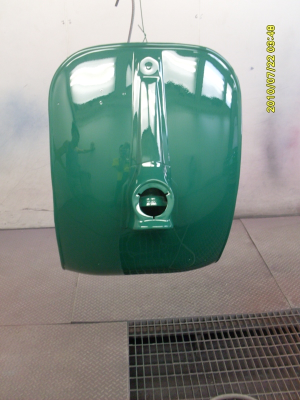 le foto le ho fatte nel forno la vernice non era ancora secca,beh forse è vero però,un pò lucida lo è,ma fa nulla,il colore mi piace tantissimo..oggi vado a prenderla,mi son già fatto prestare la macchina da mio zioper caricarla e portarla a mettere il bordo scudo,al più presto inizierò col rimontaggio e foto foto foto!