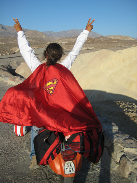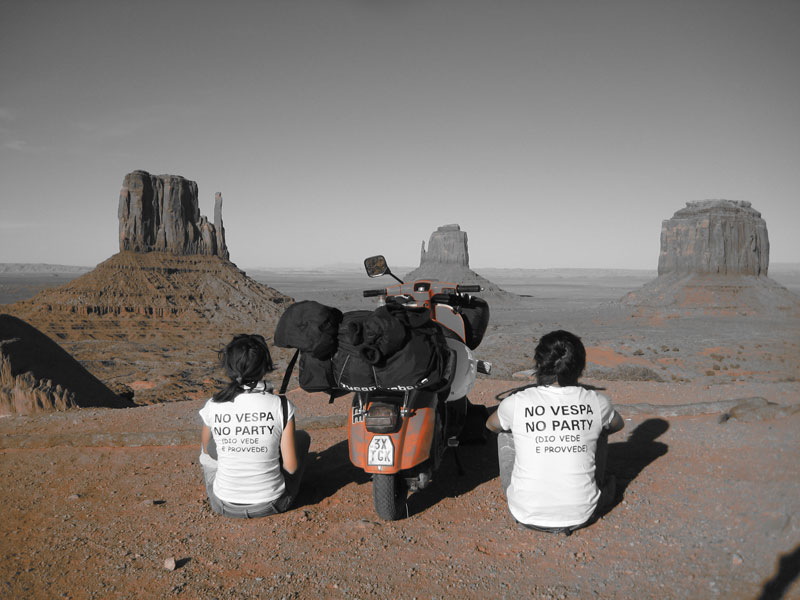 Ancora non voglio pensare alla fine del viaggio, ma e` stato un vero braccio di ferro tra la natura selvaggia dell`America e noi! Ci ha regalato qualcosa che non cambierei neanche con tutti i soldi del mondo !!!!! Ogni notte quando andiamo a dormire, ci passano davanti migliaia di immagini, di persone e posti. Tutti i saluti, i pollici in su e gli aiuti ricevuti, la forza del vento e la pace durante le notti stellate in tenda nel deserto!!!! Non pensate all`america che molte volte fanno vedere in modo sbagliato, gli Americani quelli che lavorano, quelli che incontri per strada sono fantastici, l`Asia e` chiamata la terra del sorriso , ma x quanto ci riguarda, gli americani non sono da meno!! Ho sognato per tutta la vita questo viaggio, non sapevo bene il xche` ma questa terra mi chiamava!! E la realta` supera la fantasia, sia come natura che come umanita`!! Mettete da parte i soldi, vendete la macchina se l`avete e venite sulla route66 in vespa …………….e` da sballo!!!! Lasciate a casa tutti i dubbi e le paure qui e` ancora liberta`. Potete spedire la vespa senza problemi, potete circolare senza casco in 2 con motorere a 2 tempi carichi come muli e troverete soltanto sorrisi, aiuti e una natura scolvongente. Ciao a presto!! |