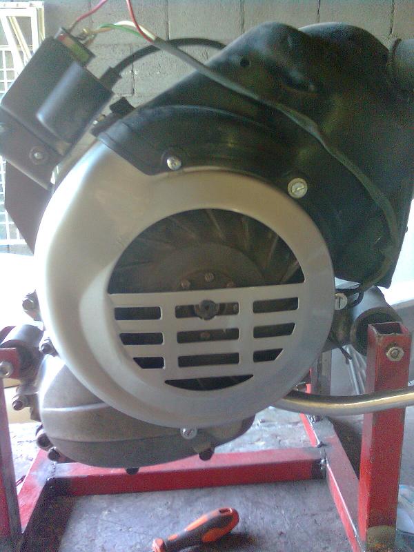 L'aria forzata anzichè seguire il percorso obbligato nella cuffia ti esce dal foro della candela poichè mi pare di vedere, oppure la foto mi inganna, che la pipetta mi sembra più stretta del foro della cuffia. Magari è ininfluente in termini di raffreddamento ma comunque per sicurezza non mi fiderei troppo,sai, quel motorello alla fine lo farai cantare no ??
