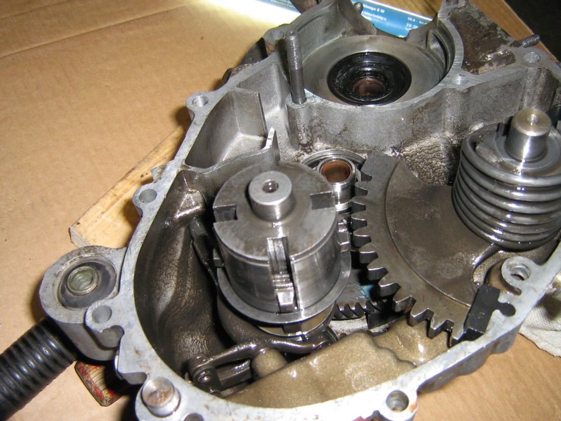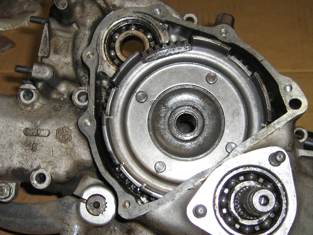 per il cestello della frizione, scommetto che avete tolto la frizione togliendo l'anellino di ferro... non fatelo mai pių, perchč potrebbero saltarvi i dischi in faccia... per toglierlo o usi l'estrattore, o a carter aperti prendi un cacciaspine, lo posizioni al centro del quadruplo (quel pernetto filettato) e lo scassi di mazzate nooooo scherzo, batti ma se oppone molta resistenza lascia stare, compra l'estrattore dal costo esiguo di 8€ e lo togli...