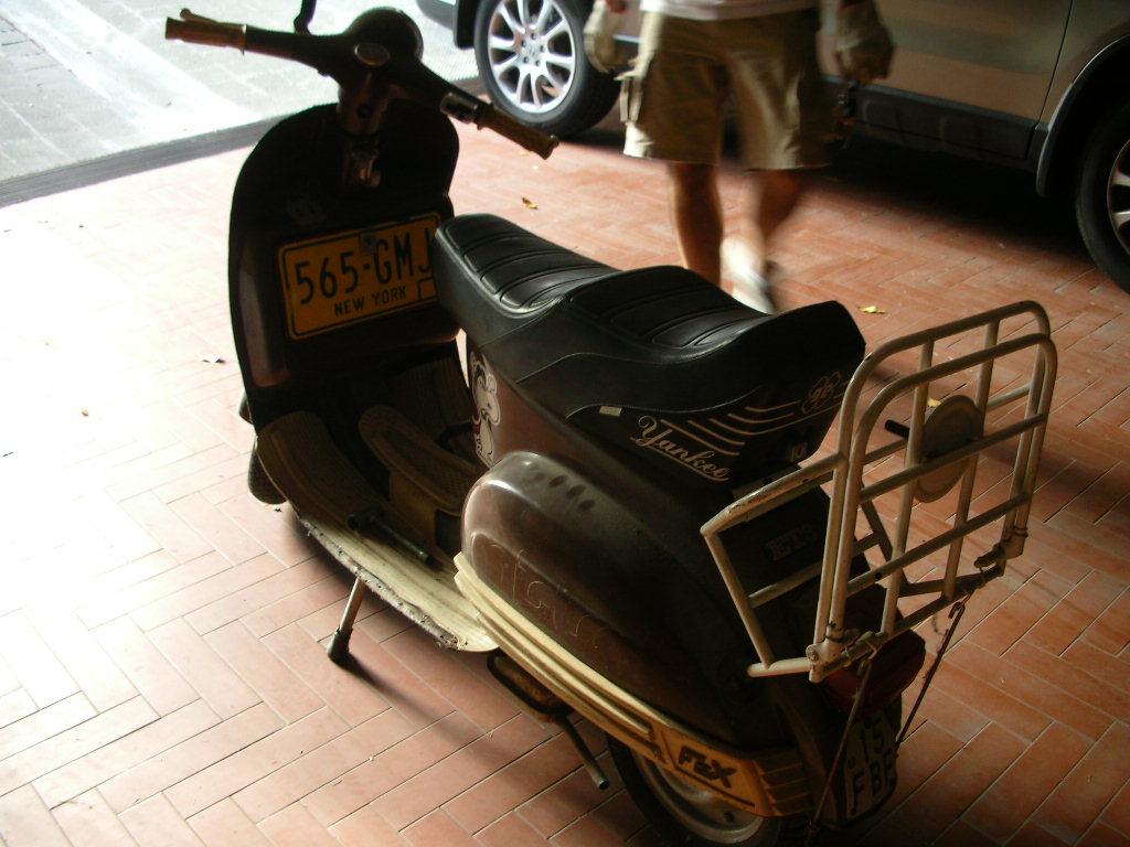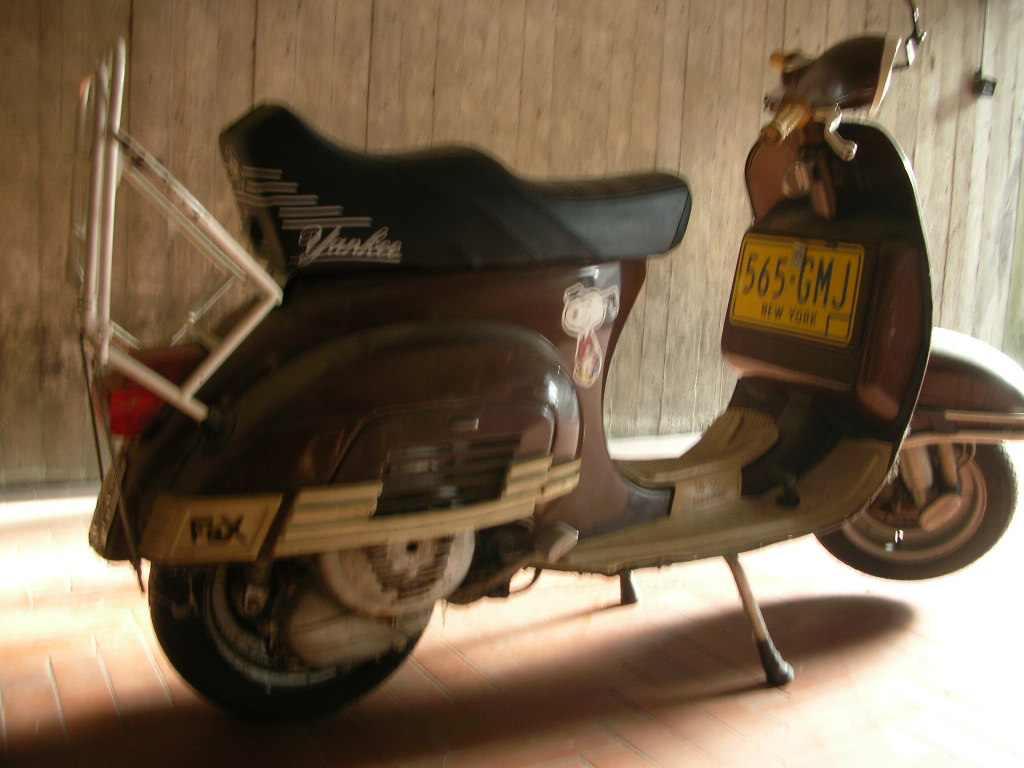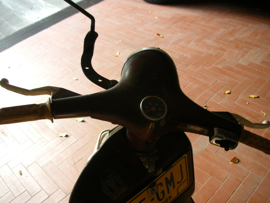 si vede male ma credo che la marmitta abbia lo scarico in basso e non in alto comunque non capirò mai perchè hanno conciato tante vespe con questo stile (sella yenkee,leve, faro post et3, specchietto, tutte le cromature bianche bauletto portapacchi, manopole e musetto),anche io ho la vecchia special di mio zio fatta così,ne vedo tantissime.... |