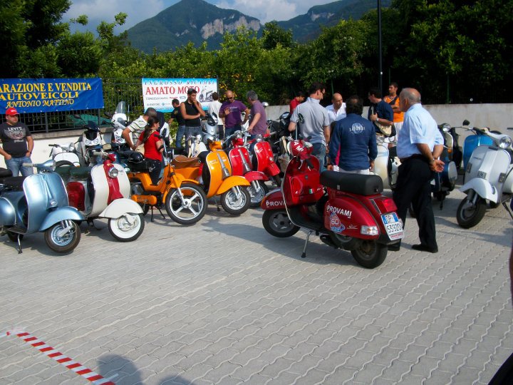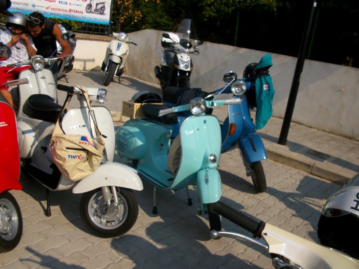 Ciao amici ecco altre nostre foto!! ormai i raduno li stiamo facendo quasi tutti hihihi . Comunque è stato un bellissimo raduno però non era solo di vespe infatti c'erano anche moto e auto d'epoca , nonostante il raduno si è svolto di sabato pomeriggio e sotto un pochino di piaggia passeggera sono stati in molti a partecipare. l'ingresso si pagava 5 euro e ci hanno dato un sacco di cose..(pochi gadget e molte cose da mangiare persino una scheda della vodafone con 5 euro di traffico) poi la sera verso le 8 hanno fatto la gara di lentezza cateoria moto e categoria vespa io e i miei amici siamo arrivati in finale . Alla fine hanno fatto un'estazione, noi avevamo comprato 3 biglietti e abbiamo vinto il premio..cioè una macchina radiocomandata hihih...e chi sò immaginav!! Come al solito un grazie a tutti i miei amici che con la loro compagnia hanno dato un tocco in più a questo raduno