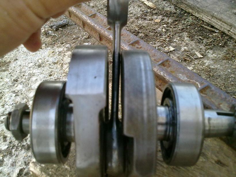 Ecco una foto dove si vede come la biella spingendola a destra va a sfiorare la spalla dell'albero