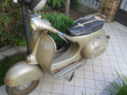 Per il restauro del telaio pensavo di procedere cosi: una volta smontata tutta, prima ancora di sabbiare, pensavo di andare a farmi campionare il colore prendendo come riferimento la parte sotto il serbatoio che a mio parere è quella più conservata e vicina all'originale! Qualcuno ha già avuto esperienza con questo metodo?? Perchè il codice di questo colore non risulta in nessun database della piaggio in quanto questo modello veniva verniciato dalla fabbrica belga misa che si occupava dell'assemblaggio... quindi penso che l'unico metodo per riprodurre il colore sia quello scritto sopra ( per fortuna almeno il fondo nocciola è quello classico identico alle vespe nostrane )