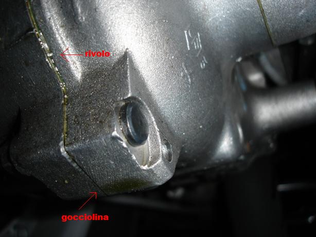 ecco una foto della perdita di olio ho controllato tutto..pulito bene ma niente credo proprio che provenga dall' unione dei carter... ..