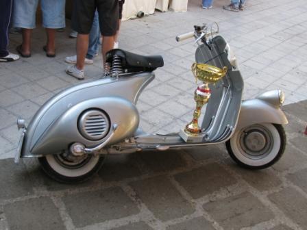 Ed eccomi qua, a mente fresca, a fare il bilancio del raduno: semplicemente fantastico!!! Ho avuto modo di conoscere un sacco di gente appassionata, tanti utenti dei forum su cui scrivo e ho visto di tutto, dal bidone più maltrattato al gioiello più scintillante. L'atmosfera era goliardica e guascona, condita dal puro spirito solidale vespistico. In parole povere, mi sono divertito come un ragazzino! Come membro del Vespa Club Tempo di Moto mi sento in dovere di ringraziare il presidente Giuliano e tutto lo staff per aver organizzato un raduno così importante. Grazie di cuore, ragazzi!! E poi ringrazio poi vespisti, venuti da ogni parte d'Italia, per aver partecipato così numerosi a questa manifestazione. Si parla di qualcosa come 450 partecipanti!! Che bello poter vedere persone di ogni età, dal vecchietto sulla Vbn alla ragazzetta sulla Special, tutti uniti da questo grande sentimento! Che belli pure la mia sorellina ed il suo ragazzo sulla Sprint Veloce. Ehh si, la vespa unisce!!