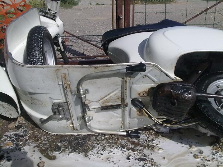 come a quasi tutte le small arrivate ai giorni nostri anche conservate (a parte la mia Et3 eheh), manca quel tubicino (che poi fuoriesce dal telaio da uno dei due fori che si vedono in foto) che, collegato alla vascetta di recupero posta sotto il carburatore, convoglia fuori la condensa di miscela che cola dal filtro dell'aria. La mancanza di quel tubicino provoca quella morchia che hai così faticosamente levato.