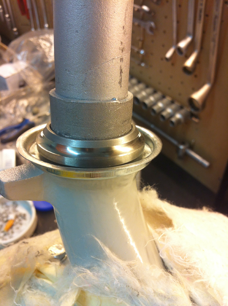 Tralasciamo momentaneamente il motore in attesa che arrivino gli ultimi ricambi... Ho iniziato il rimontaggio della forcella...cuscinetti nuovi, paraoli ecc.