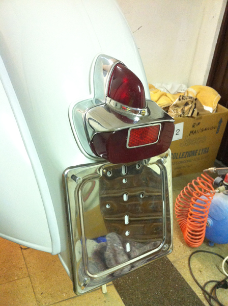 il portatarga in cromo, per targa nuova EU, trovo sia più azzeccato di quello in tinta in questo caso... il fanale post lo vende reproo siem identico o almeno vellissimo Restaurolandia, ma...