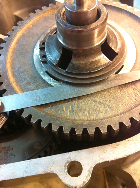 Inserimento albero cambio (Non a martellate, ma come spiegato più volte dal buon Mimmo, usiamo il metodo degli spessori) e verifica del gioco con nuovo anello di rasamento