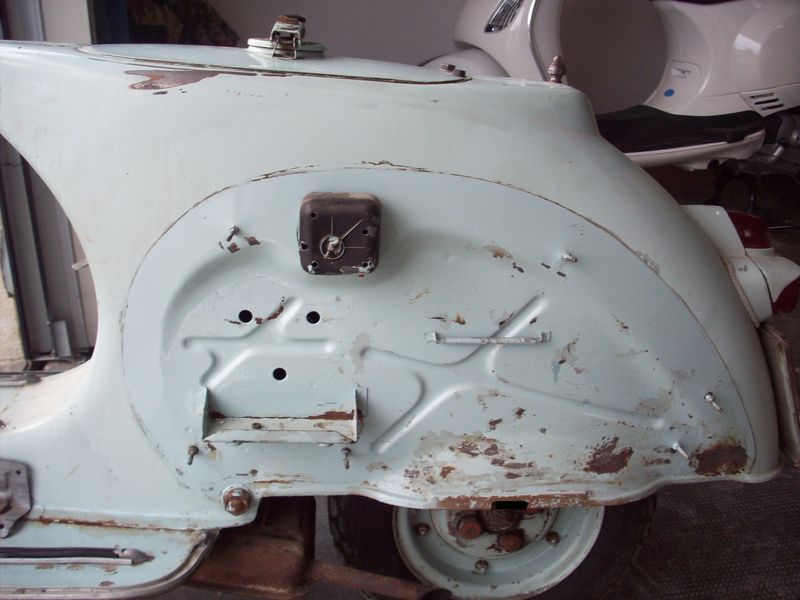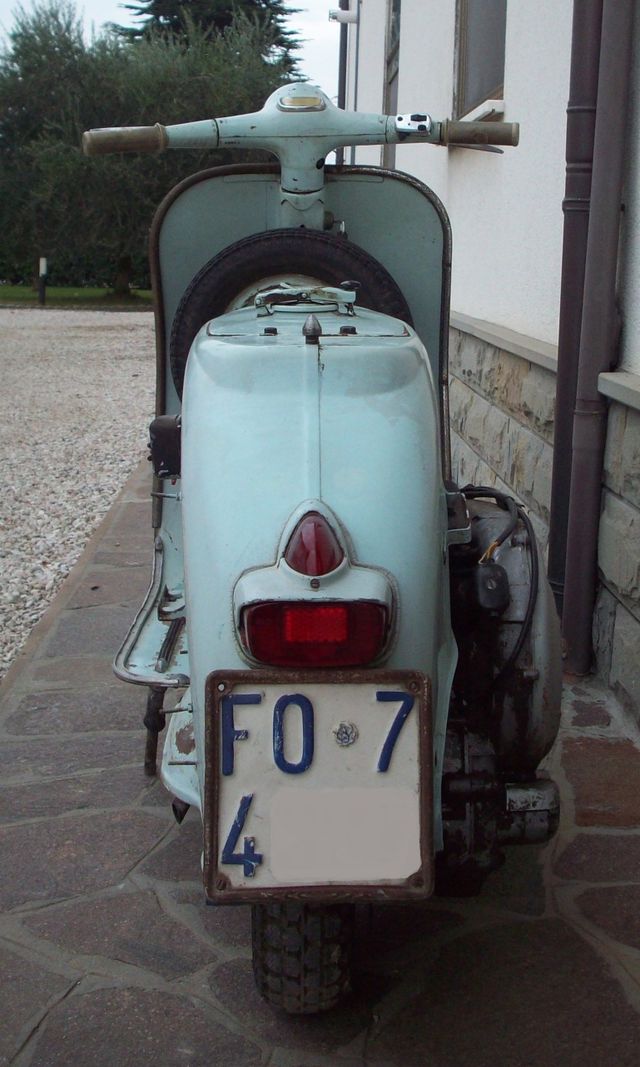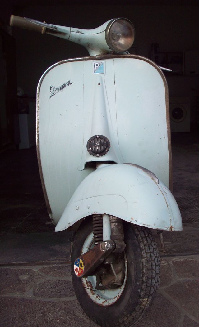 | grazie dei complimenti poeta,ormai nn so neanche io cosa fare xkè il meccanico mi consiglia di verniciarla e basta e apparte uno,tutti i carrozieri cercano di convincervi a sabbiarla,boh..anche se nn si vedono nelle foto ho anche le pancie con qualche graffio la sella intera,il vetrino del fanalino post con linea argentata attorno al catarinfrangente che però è rotto sulla punta superiore e il poggia piedi laterale da montare sulla pancia marchiato fabbri...io nn me ne intendo tanto x quel che riguarda la meccanica o l impianto elettrico nn avendo mai avuto una vespa come questa,quindi da cosa noti la modifica all imp elettrico?cmq l altra vespa che si vede in sfondo è una vespa lx 125 a carburatore che ho preso l anno scorso,da usare quotidianamente d estate è molto comoda... |