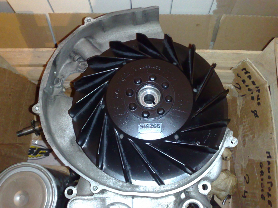 il volano è il classico che usciva sui px my, pero senza ghiera d'avviamento e siccome era parecchio rovinato l'ho pulito e verniciato con del nero opaco... aspetta che lo peso ... allora è 2kg e 50 gr!
