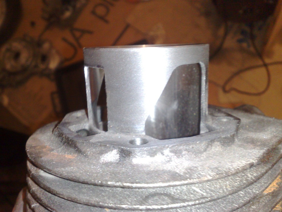 allora per il pistone ho visto che (montato sul semicarter albero cilindro e pistone) i paypass laterali del pistone si aprivano veramente poco! e la finestra era legermente piu piccola del terzo travaso sul cilindro! la camicia si puo anche tagliare tutta perche tanto li le fascie non arrivano, ma anche cosi va piu che bene, e dopo bisogna rivedere i travasi sui carter pero! (se si vede il parmakit tsv 177 ke è una copia del polini ha la camicia tutta aperta!)