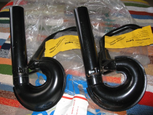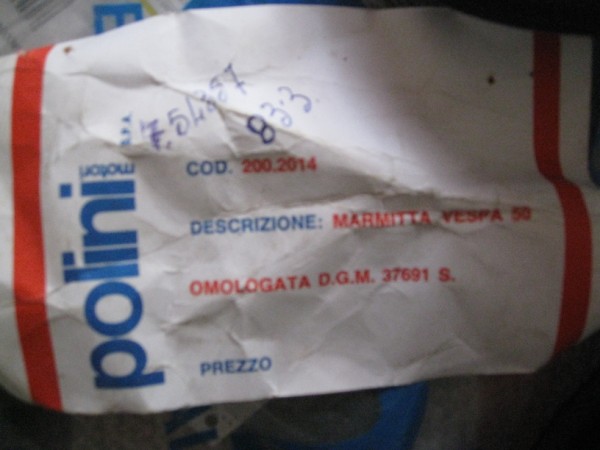 Non sono soddisfatto della cannone che già posseggo, poichè ha una paratia del silenziatore asportata quindi fa troppo casino e non il classico sibilo...avevo deciso che la cannone dovevo averla a tutti i costi in ordine col suo sibilo. Bene ecco le foto, trovate 2 fondi di magazzino, non vi dico il prezzo ma potete immaginare...perchè 2? Una per la vespa e una per la mensola. Son un pò malato lo so...Il venditore ne aveva una terza con adesivo bianco polini dell'epoca! Quella credo l'abbia venduta lo stesso.